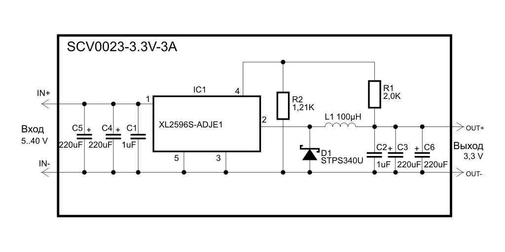 Схема стабилизатора напряжения SCV0023-3.3V-3A Размер: 29 кб -