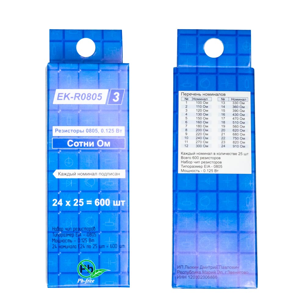 Наборы чип резисторов EK-R0805/3, сотни Ом. Оптовая упаковка 25 шт.