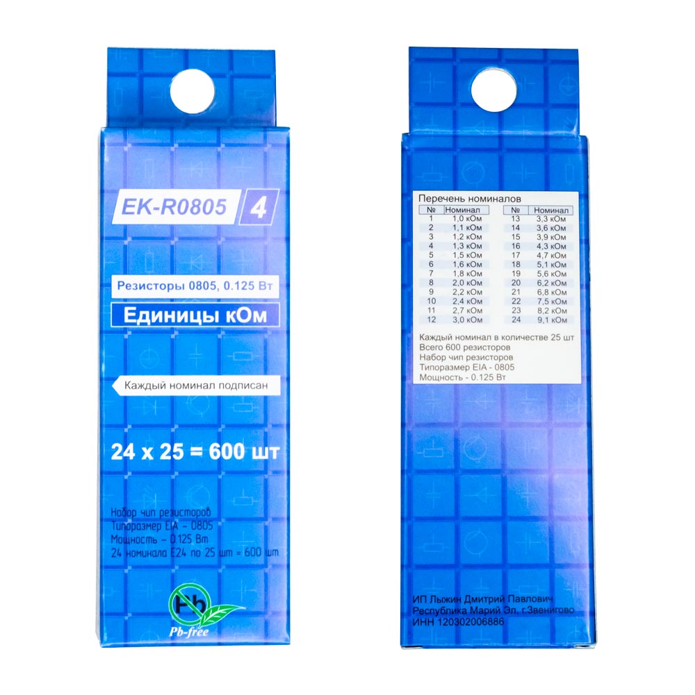 Наборы чип резисторов EK-R0805/4, единицы кОм. Оптовая упаковка 25 шт.