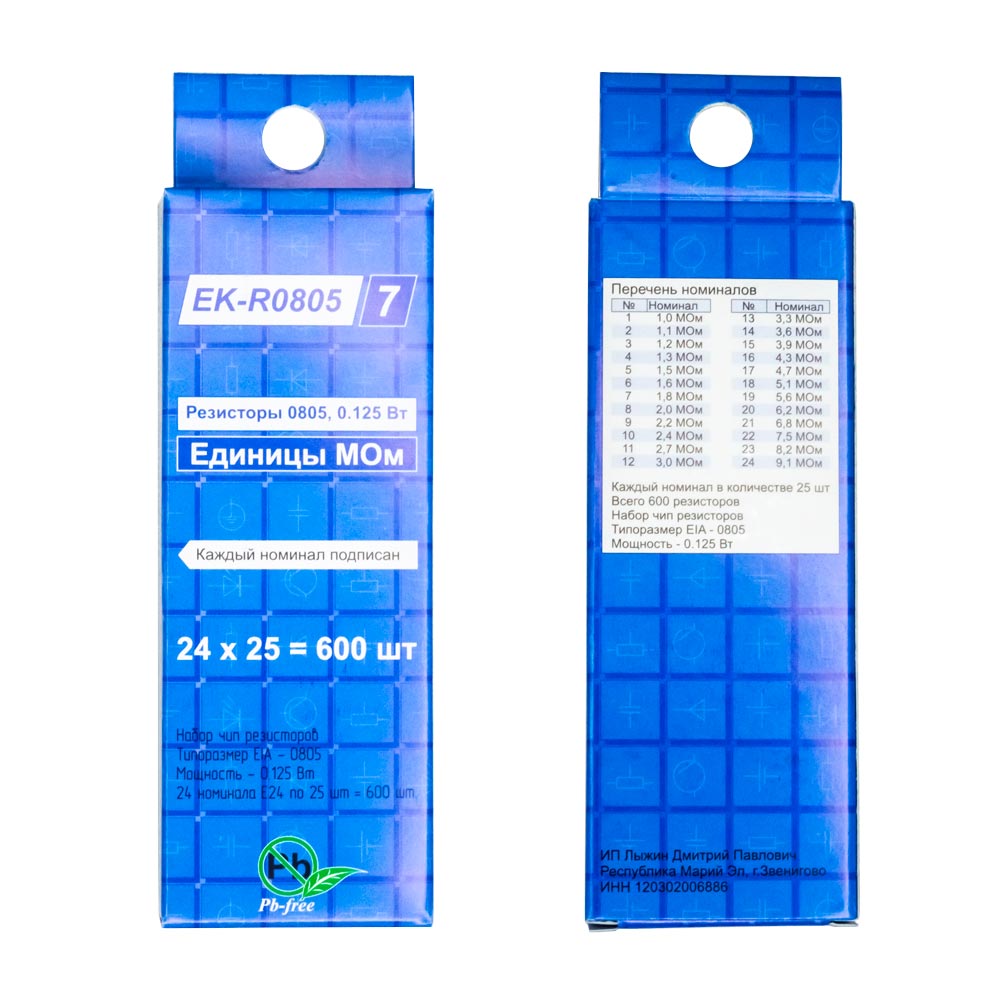 Наборы чип резисторов EK-R0805/7, единицы МОм. Оптовая упаковка 25 шт.