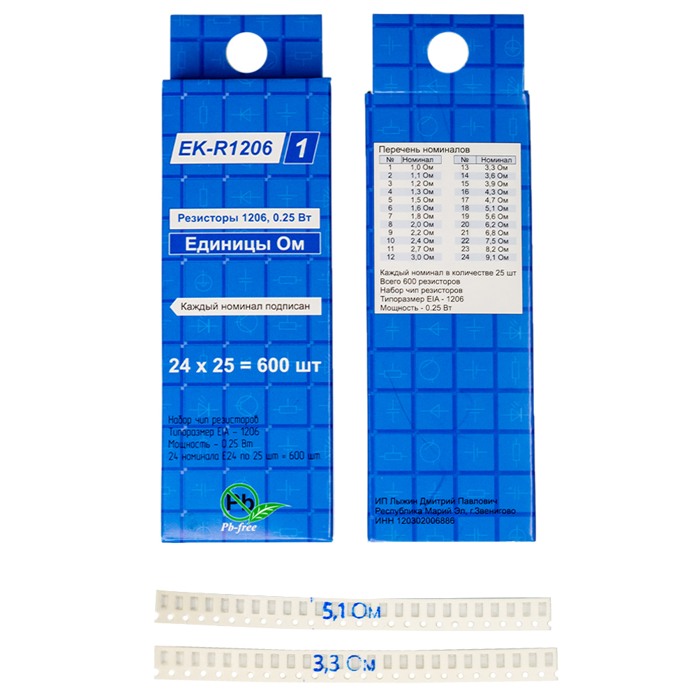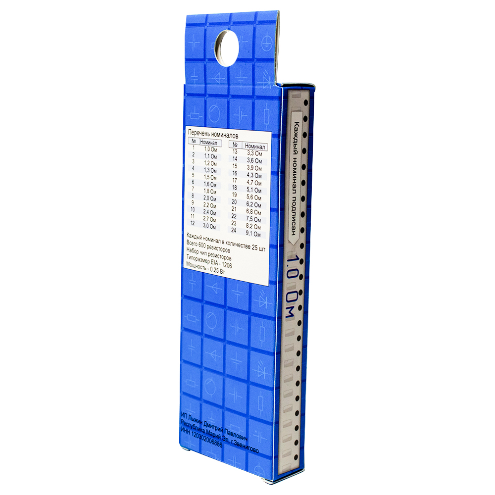 Оптовая упаковка из 25 наборов ЧИП резисторов EK-R1206/1, единицы Ом.