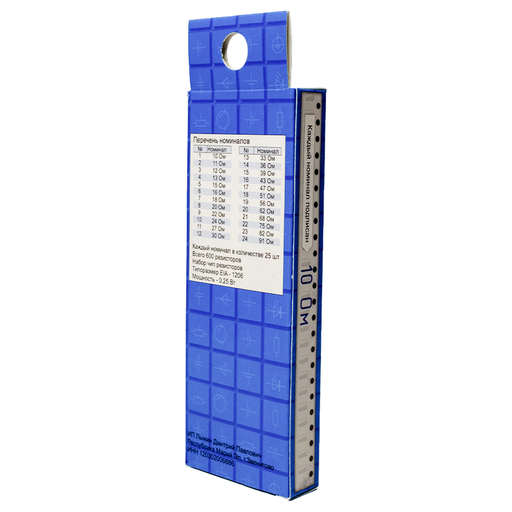 Номинал Количество 10 Ом 25 шт. 11 Ом 25 шт. 12 Ом 25 шт. 13 Ом 25 шт. 15 Ом 25 шт. 16 Ом 25 шт. 18 Ом 25 шт. 20 Ом 25 шт. 22 Ом 25 шт. 24 Ом 25 шт. 27 Ом 25 шт. 30 Ом 25 шт. 33 Ом 25 шт. 36 Ом 25 шт. 39 Ом 25 шт. 43 Ом 25 шт. 47 Ом 25 шт. 51 Ом 25 шт. 56 Ом 25 шт. 62 Ом 25 шт. 68 Ом 25 шт. 75 Ом 25 шт. 82 Ом 25 шт. 91 Ом 25 шт. -