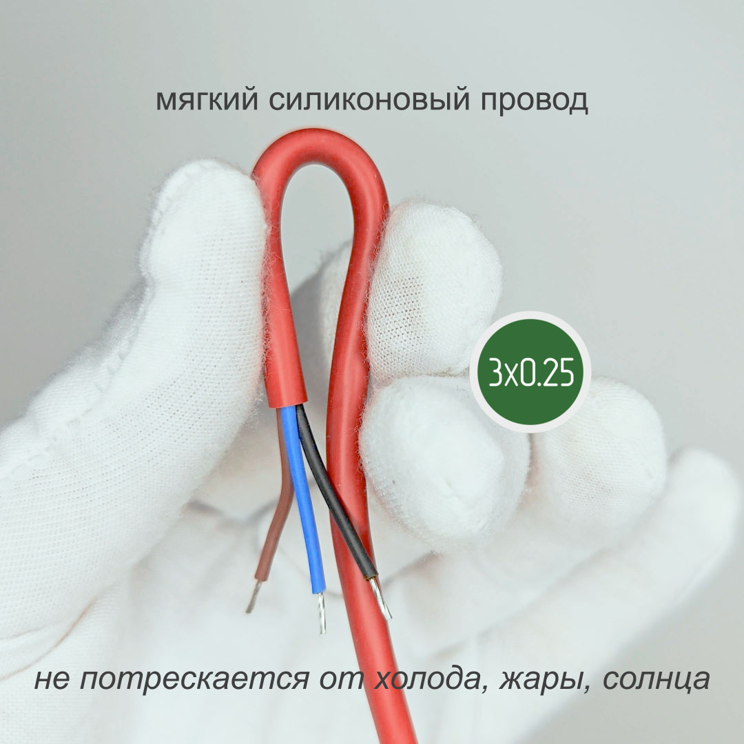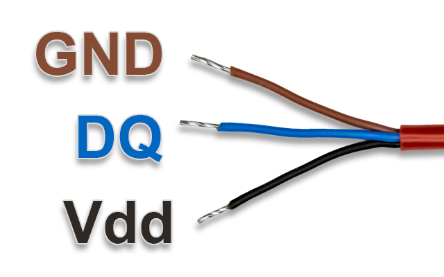 Термостойкий кабель с изоляцией из силиконовой резины применяется при температурах -50°C до +180°C. Кабель обладает превосходной защитой от УФ-лучей, стойкостью к озону и кислороду, искусственному свету, атмосферным осадкам, а также сохраняет свои свойства при низких температурах.Цветовая маркировка проводов: синий - DQ, коричневый - GND, черный - Vdd.