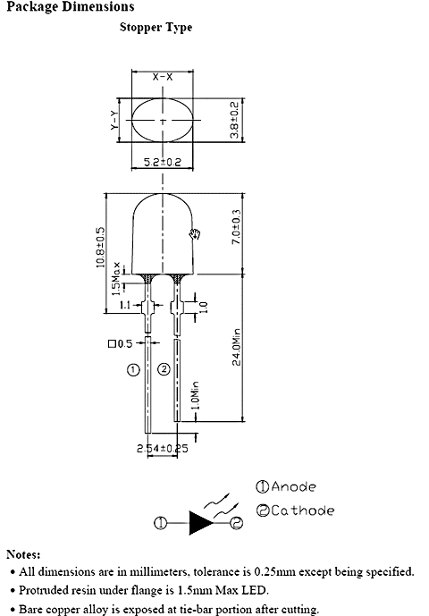 Pulse Forward Current (Duty1/10@ 1KHz) = 100mA