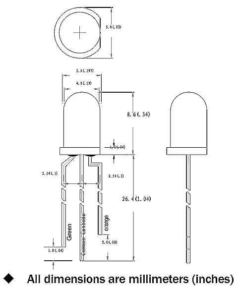 Цвет Красный+зеленый Тип Круглый Категория 5 мм Диаметр линзы, мм 5 Угол, гр 60 Номинальный ток, А 0,02 Номинальная мощность, Вт 0,07 Сила света, мКд 20 / 15 -