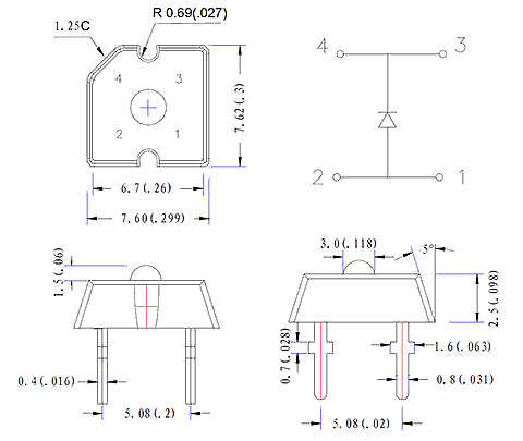 Параметр Значение номинальный ток 20мА яркость 870mcd угол 1/2 яркости 75гр. -