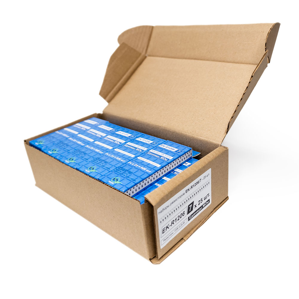 Наборы резисторов в оптовых упаковках - выгодное предложение для розничных магазинов и оптовых покупателей. Наборы резисторов в привлекательных коробках с евроотверстием удобны как продавцу так и покупателю.