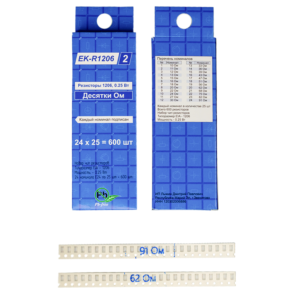 Оптовая упаковка из 25 наборов ЧИП резисторов EK-R1206/2