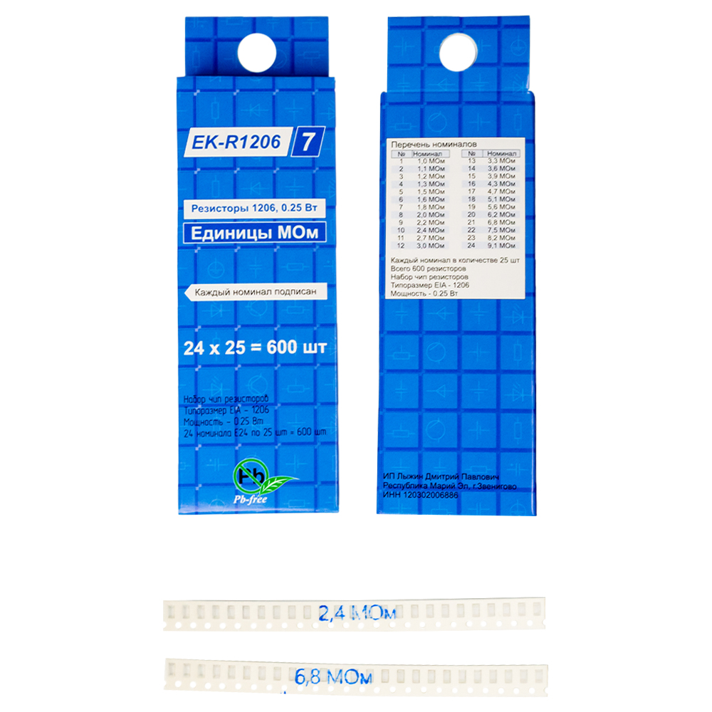 Наборы чип резисторов EK-R1206/7, единицы МОм. Оптовая упаковка 25 шт.