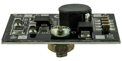 Внимание! Устанавливать модуль на радиатор необходимо металлическими винтами, для обеспечения гальванической связи между контактом модуля и алюминиевой подложкой. При использовании теплопроводной пасты ее количество должно быть минимально. Винт, установленный в отверстие модуля, обеспечивает необходимую для корректной работы стабилизатора гальваническую связь минусового контакта с подложкой, поэтому винт не следует удалять при использовании без радиатора.
