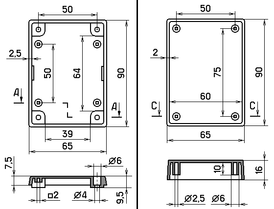BOX-90x65x23.5 - Корпус пластиковый 90х65х23.5, черный
