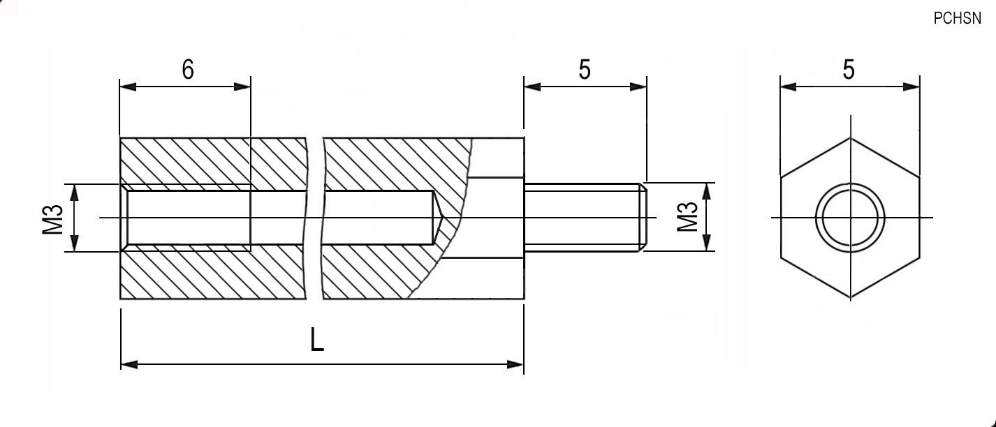 PCHSN-22. M3 (22мм, стойка шестигр. латунь)