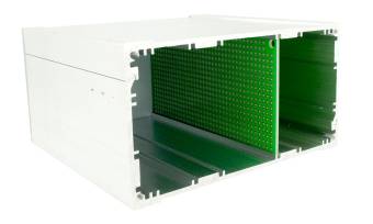 - Пазы шириной 2 мм позволяют установить платы и экранирующие элементы до четырех штук горизонтально или до восьми - вертикально;