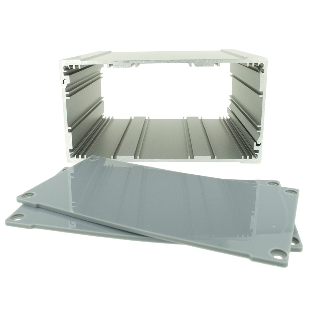 Конструктивно состоит из двух симметричных половин профиля экструдированного анодированного алюминия и двух пластиковых торцевых панелей толщиной 2 мм с отверстиями под четыре винта потай. Анодированая поверхность улучшает эстетические качества, повышает устойчивость к царапинам и отпечаткам пальцев. Пластиковые панели легко поддаются механической обработке. Корпус разработан специально для конструирования широкого спектра приборов.