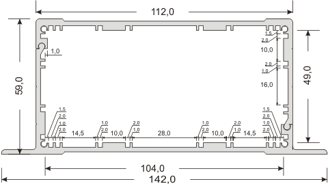 Конструктивно состоит из двух половин профиля экструдированного анодированного алюминия и двух пластиковых торцевых панелей толщиной 2 мм с отверстиями под четыре винта потай. Анодированая поверхность улучшает эстетические качества, повышает устойчивость к царапинам и отпечаткам пальцев. Пластиковые панели легко поддаются механической обработке. Корпус разработан специально для конструирования широкого спектра приборов.